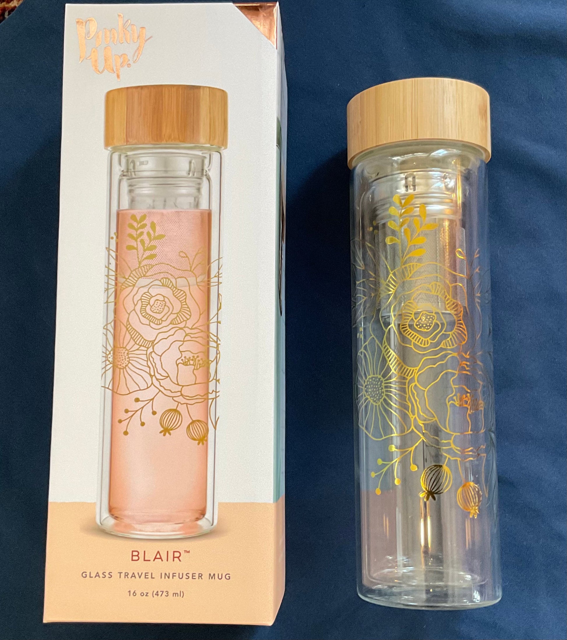 Perfect for enjoying your tea all day. Glass with infuser in the top. great with hot or cold tea .